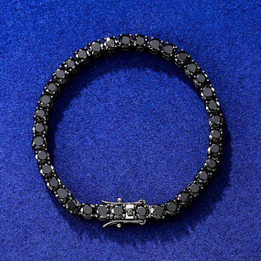 "5mm Moissanite Black Stones Tennis Bracelet in Black Gold – Iced Out VVS Diamond-Look Unisex Luxury Jewelry"