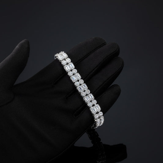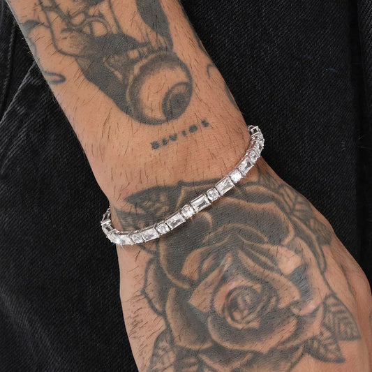 "5mm Moissanite Baguette & Round Stone Tennis Bracelet – Iced Out VVS Diamond-Look Unisex Luxury Jewelry" Ask ChatGPT
