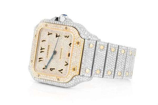 VVS Diamond Men’s Watch - Stainless Steel White & Yellow Gold Plated Arabic Watch for Men, Ideal Birthday Gift