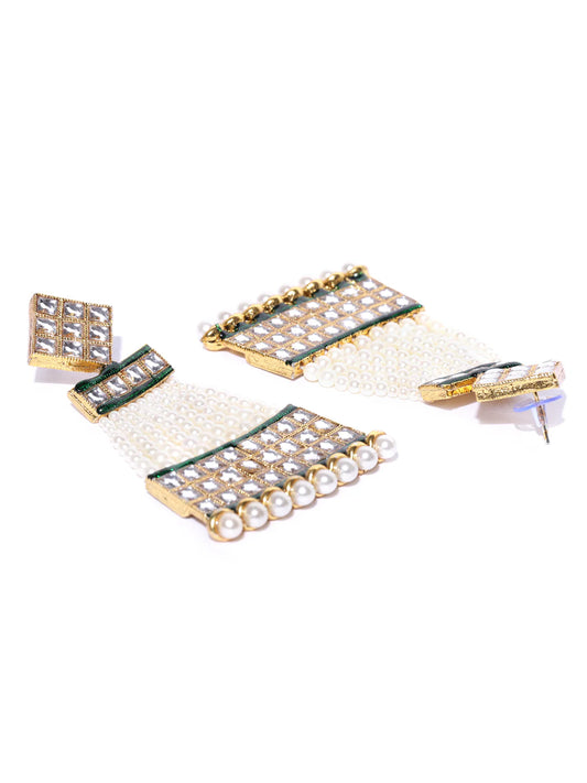 "Artificial Gold-Plated Kundan and Pearls Studded Drop Earrings for Women | Traditional Ethnic Jewelry"