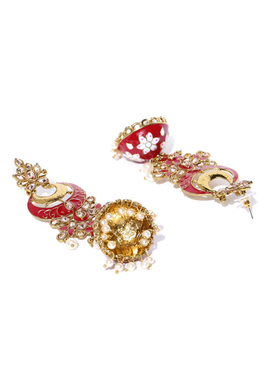 "Artificial Gold-Plated Meenakari Jhumka Earrings for Women | Maroon & White Stones Studded Traditional Jewelry"