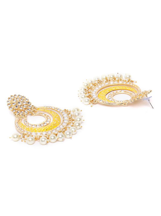 "Artificial Kundan Studded Yellow Colored Earrings for Women | Traditional Ethnic Jewelry"