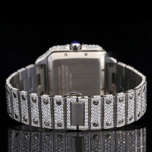 VVS Moissanite Iced Out Square Shape Watch - Stainless Steel Hip Hop Bust Down Timepiece, D Color Moissanite Wristwatch for Men