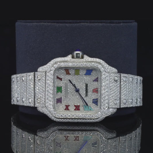 Rainbow Design Roman Numeral Fully Automatic Moissanite Watch – Luxury Iced Out VVS Bust down Bling Watch for Men