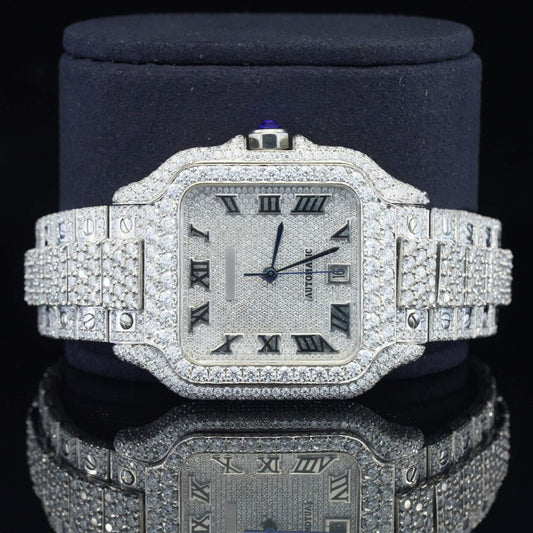 Iced-Out Roman Style Moissanite Watch – Automatic Luxury Timepiece with Classic Elegance & Ultimate Shine