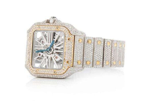 Iced Out Two-Tone 41MM VVS Moissanite Diamond Hip-Hop Skeleton Watch
