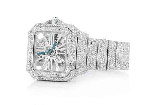 Skeleton VVS Moissanite Men’s Wrist Watch - Luxury Stainless Steel White & Yellow Gold Plated, Iced Out Watch for Birthday Gift