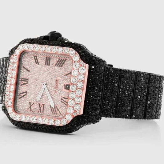 Roman Dial Black Moissanite Diamond Iced Out Luxury Watch