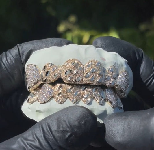10 on 10 VVS Rose Gold Moisannite Diamond Grillz