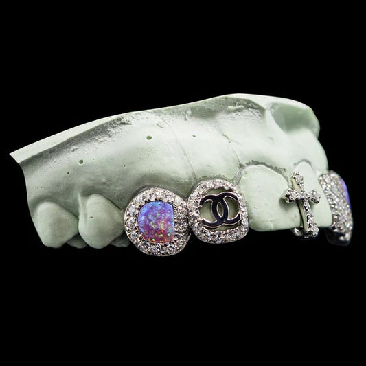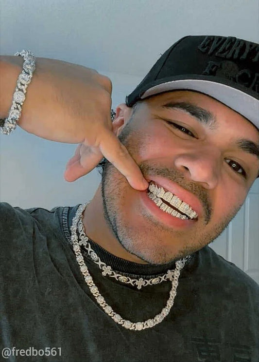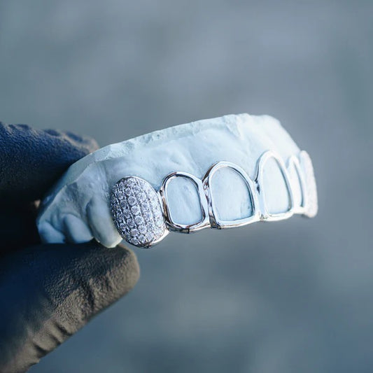 Iced VVS Moissanite with Lozenge Cut Center Stone Grillz