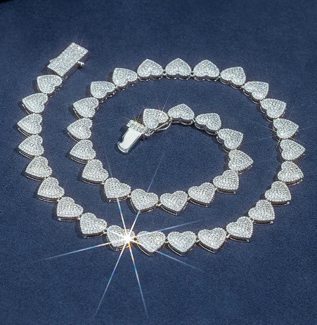 MW Unique 10MM Heart Shape Chain VVS Moissanite 925 Sterling Silver Hip Hop MW_CB1012