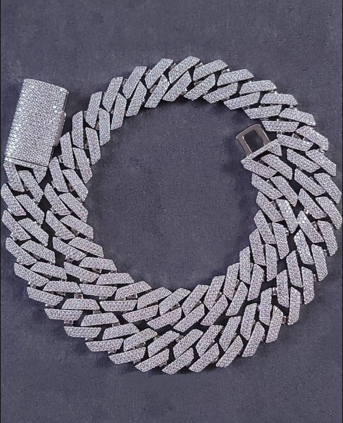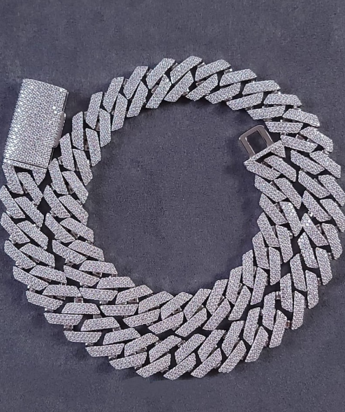 MW Luxury VVS Moissanite 925 Sterling Silver 20MM Four Row Cuban Link Chain Hip Hop MW_CB1010