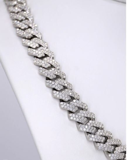 MW Unique VVS Moissanite 925 Sterling Silver 15MM Prong Cuban Link Chain Hip Hop MW_CB1001