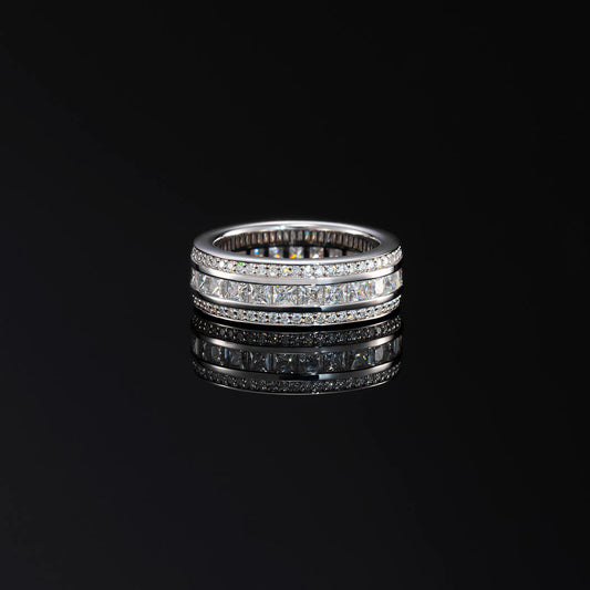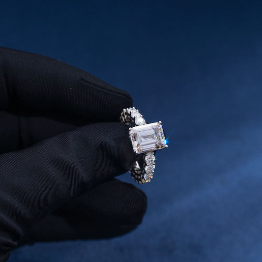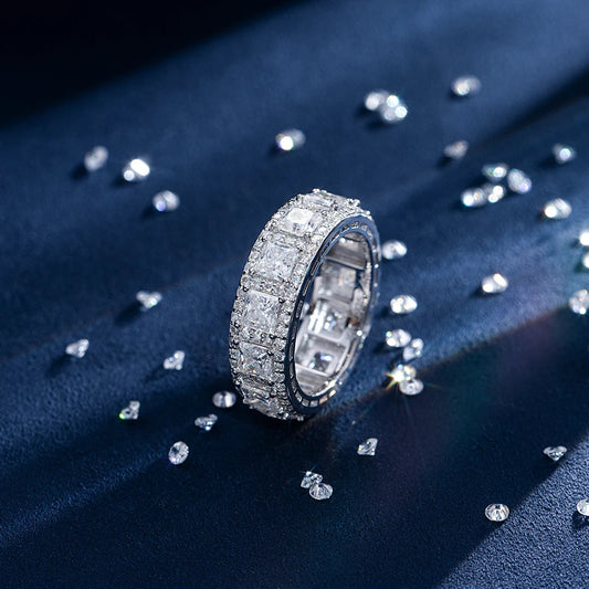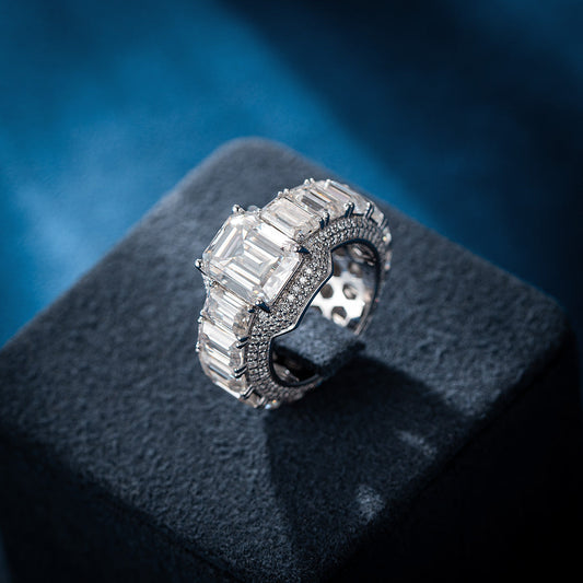 MW Iconic VVS Moissanite 925 Sterling Silver Solitaire Emerald Cut Diamond Eternity Band Ring Hip Hop MW_R1020