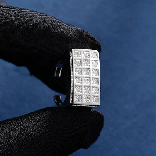 MW Gorgeous VVS Moissanite 925 Sterling Silver Rectangular Princess Cut Ring Hip Hop MW_R1015