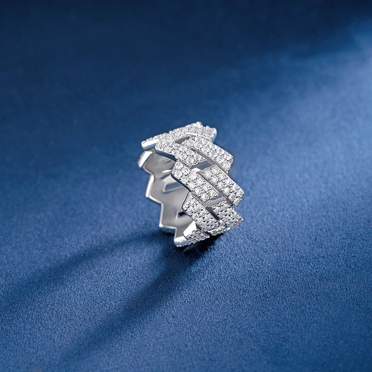 MW Lavish Shinny VVS Moissanite 925 Sterling Silver Prong Cuban Link Ring Hip Hop MW_R1014