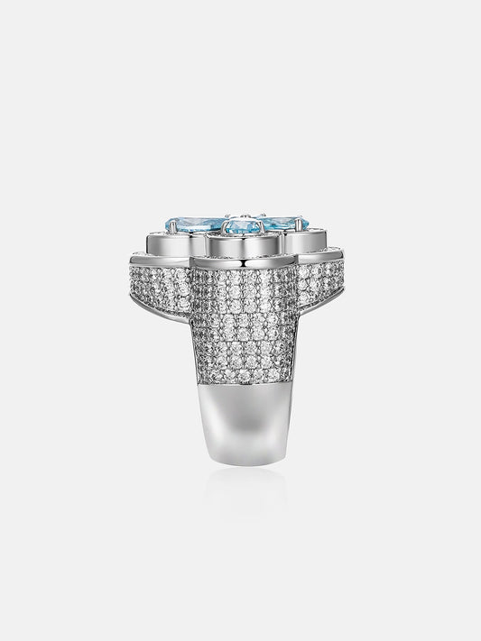 MW Gorgeous VVS Moissanite 925 Sterling Silver Blue Four Leaf Clover Ring Hip Hop MW_R1026