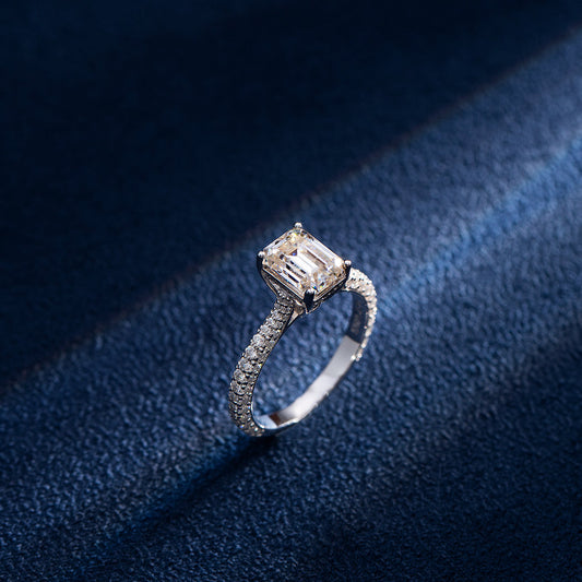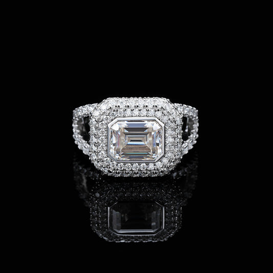 MW Premium VVS Moissanite 925 Sterling Silver Emerald Cut Halo Ring Hip Hop MW_R1009