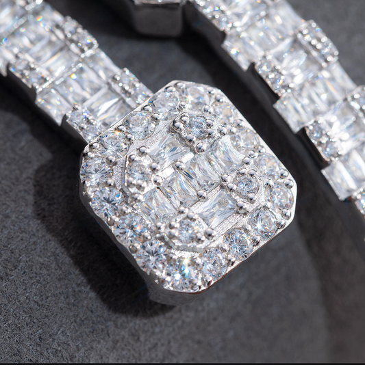 MW Lavish VVS Moissanite 925 Sterling Silver Baguette Round & Square Shape Bracelet Hip Hop MW_CB1030