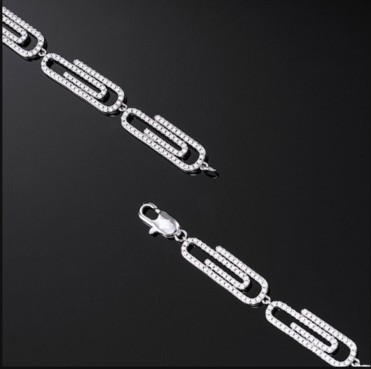MW Gorgeous VVS Moissanite 925 Sterling Silver 8MM Paper Clip Bracelet Hip Hop MW_CB1036