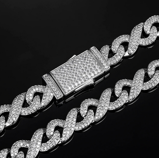 MW Luxury VVS Moissanite 925 Sterling Silver 10MM Infinity Link Bracelet Hip Hop MW_CB1034