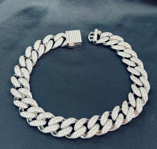 MW Lavish 10MM Prong Cuban 925 Sterling Silver VVS Moissanite Link Bracelet Hip Hop MW_CB1035
