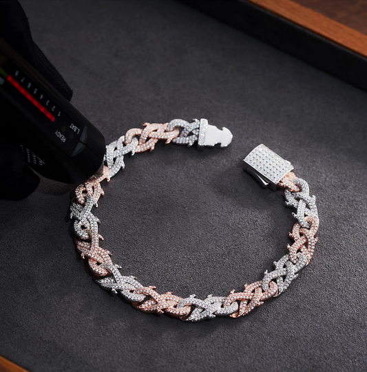 MW Unique VVS Moissanite 925 Sterling Silver 12MM Spiked Laurel Cuban Bracelet Hip Hop MW_CB1026