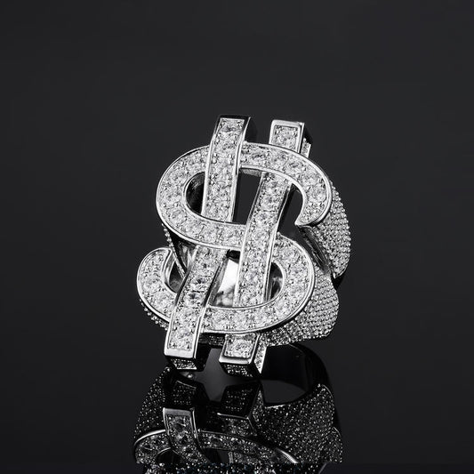 MW Luxury VVS Moissanite 925 Sterling Silver Dollar Sign Ring Hip Hop MW_R1025