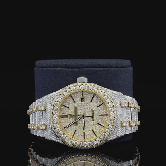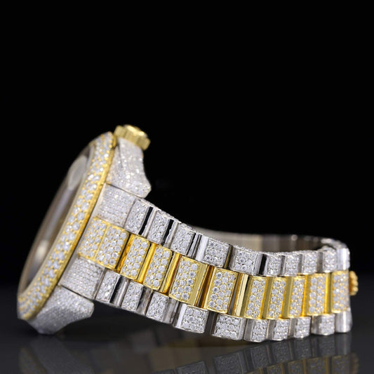 Fully Iced Out Hip Hop Two-Tone Moissanite Watch – Luxury Bling Timepiece for Men, Ultimate Shine & Statement Style