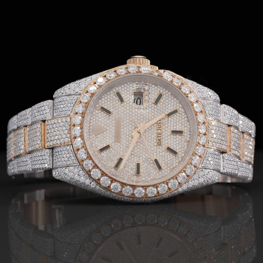 Iced-Out Moissanite Diamond Watch – Fully Automatic Hip-Hop Bust Down Two-Tone Luxury Timepiece