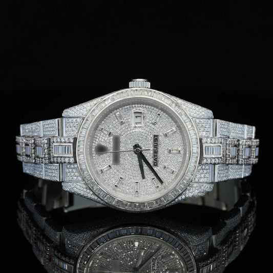 Classic Round & Baguette Iced Out Moissanite Diamond Watch – Luxury VVS Automatic Bust down Bling Watch for Men