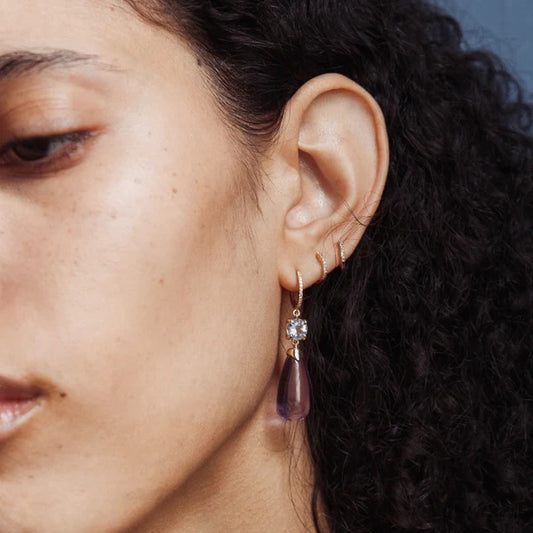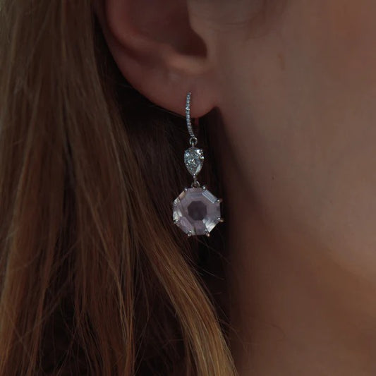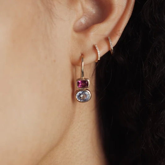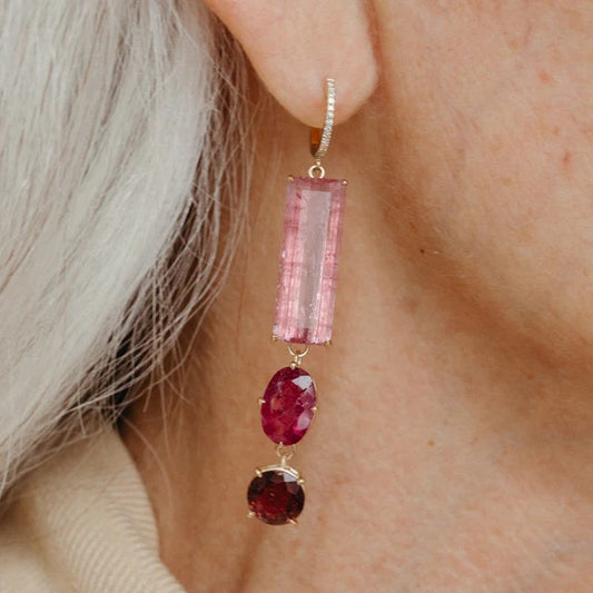 PINK TOURMALINE THREE STONE DROP EARRINGS