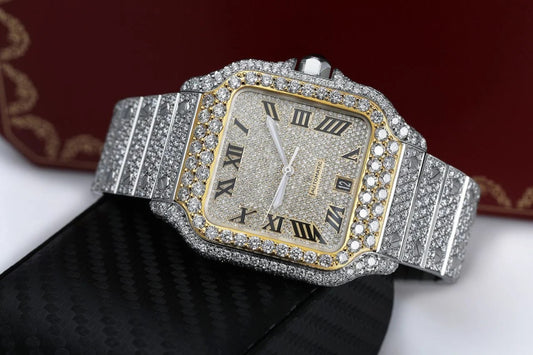 Automatic Roman Numeral Moissanite Watch – Luxury Iced Out VVS Bustdown Bling Watch with Automatic Movement for Men