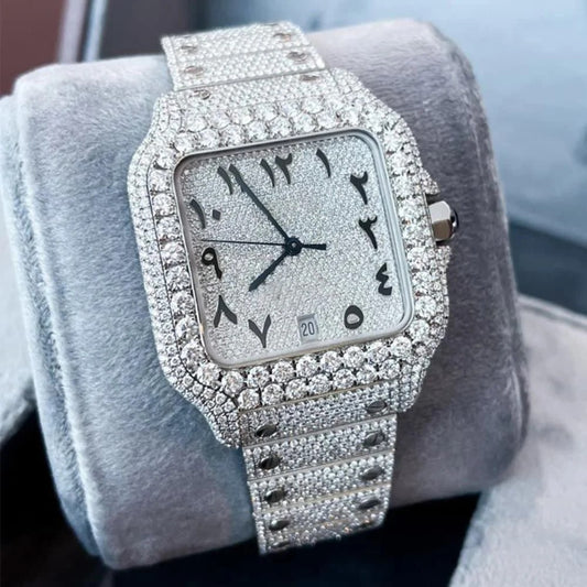 Arabian Number Iced Out Automatic Moissanite Diamond Watch
