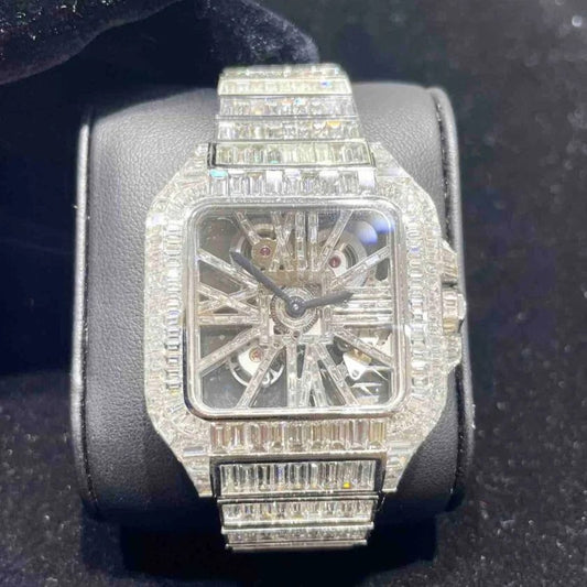 Buss Down Skeleton Full Iced Out Baguette Moissanite Diamond Watch