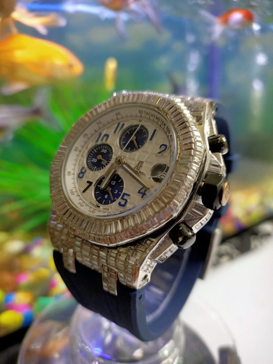 Baguette Moissanite Diamond Full Iced Out Men's Wrist Watch - Silicon Band Chronograph Working Moissanite Watch for Men