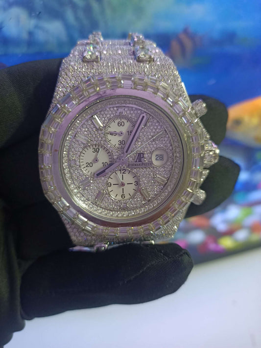 Baguette & Round Moissanite Diamond Iced Out Watch, Automatic Movement Hip Hop Watch