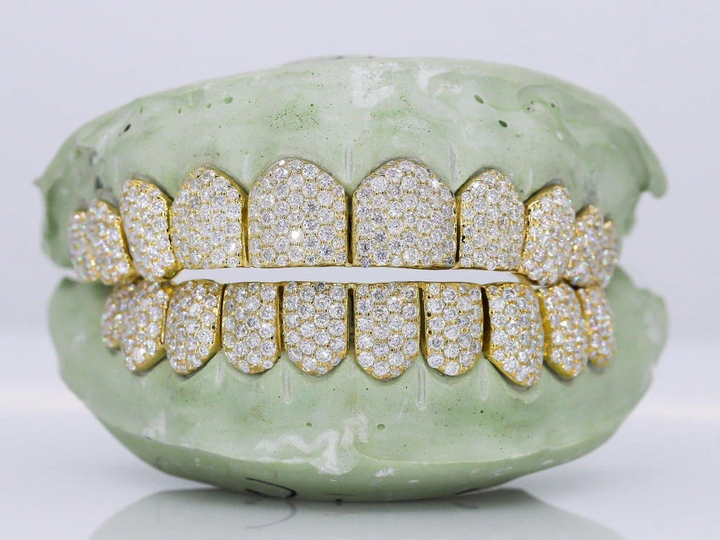 Custom Grillz Hand Set Moissanite Diamonds Top OR Bottom. These stunning pieces are a true work of art, featuring Moissanite diamonds of the finest quality and hand-set with the utmost attention to detail.