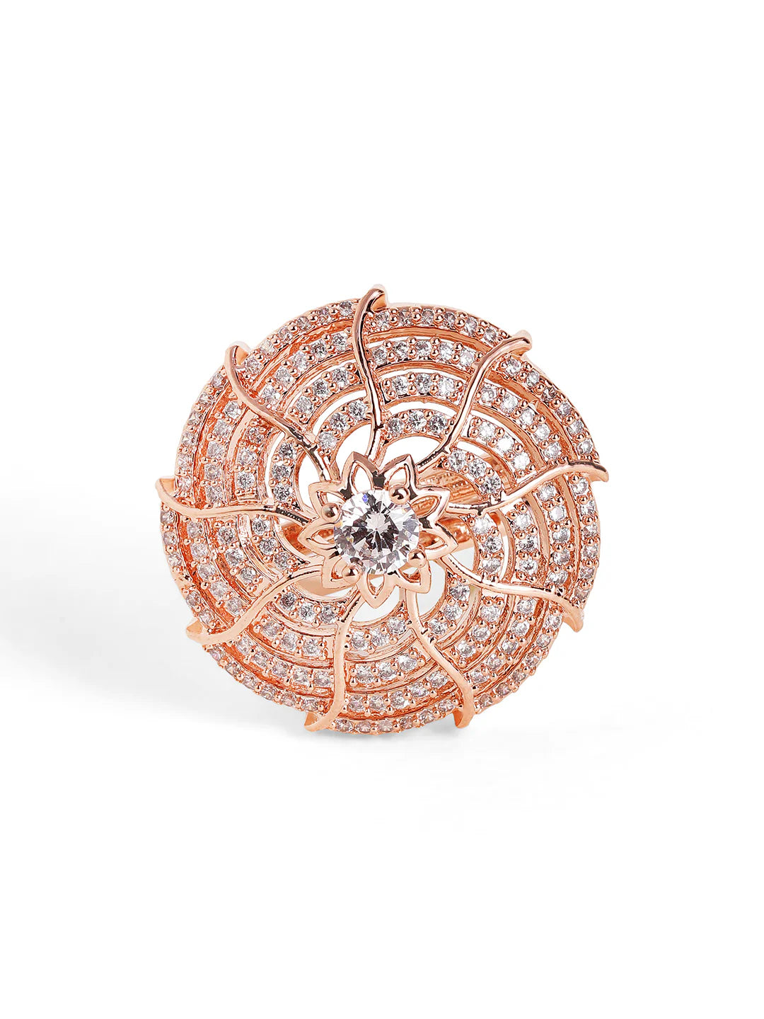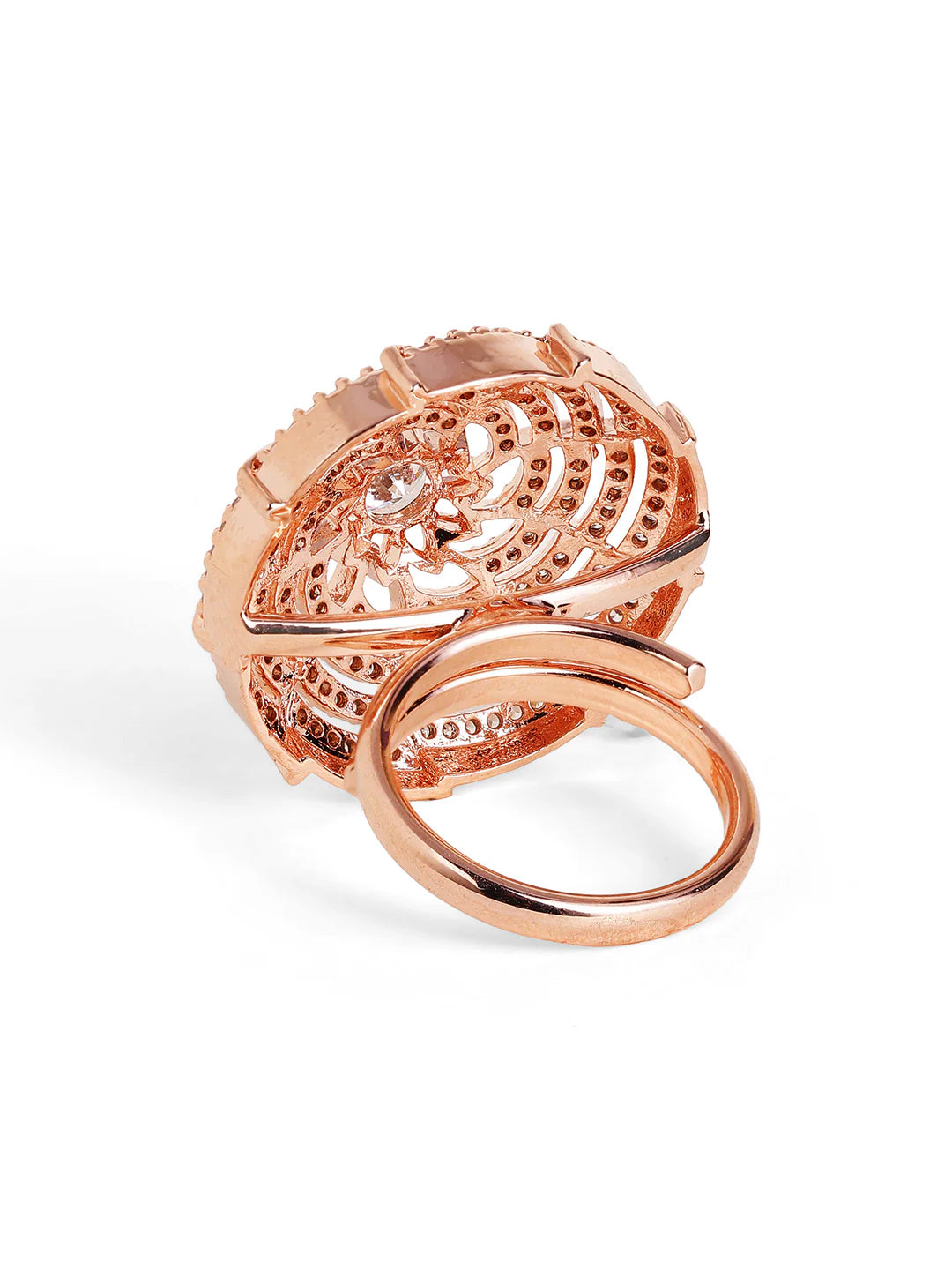 "Artificial Geometric American Diamond Ring for Women | Rose Gold Plated Adjustable Finger Ring – Stylish Party Wear Jewelry"