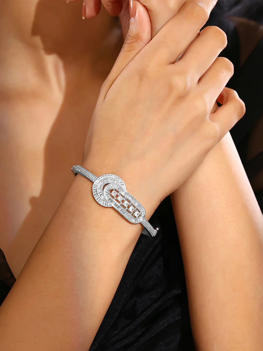 "Artificial Priyaasi Fancy Rhinestones AD Silver Plated Kada Style Bracelet for Women | Elegant Adjustable Jewelry"