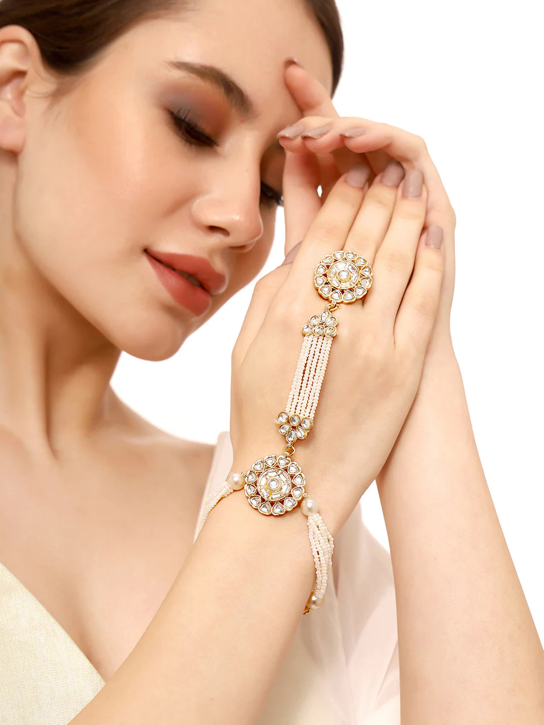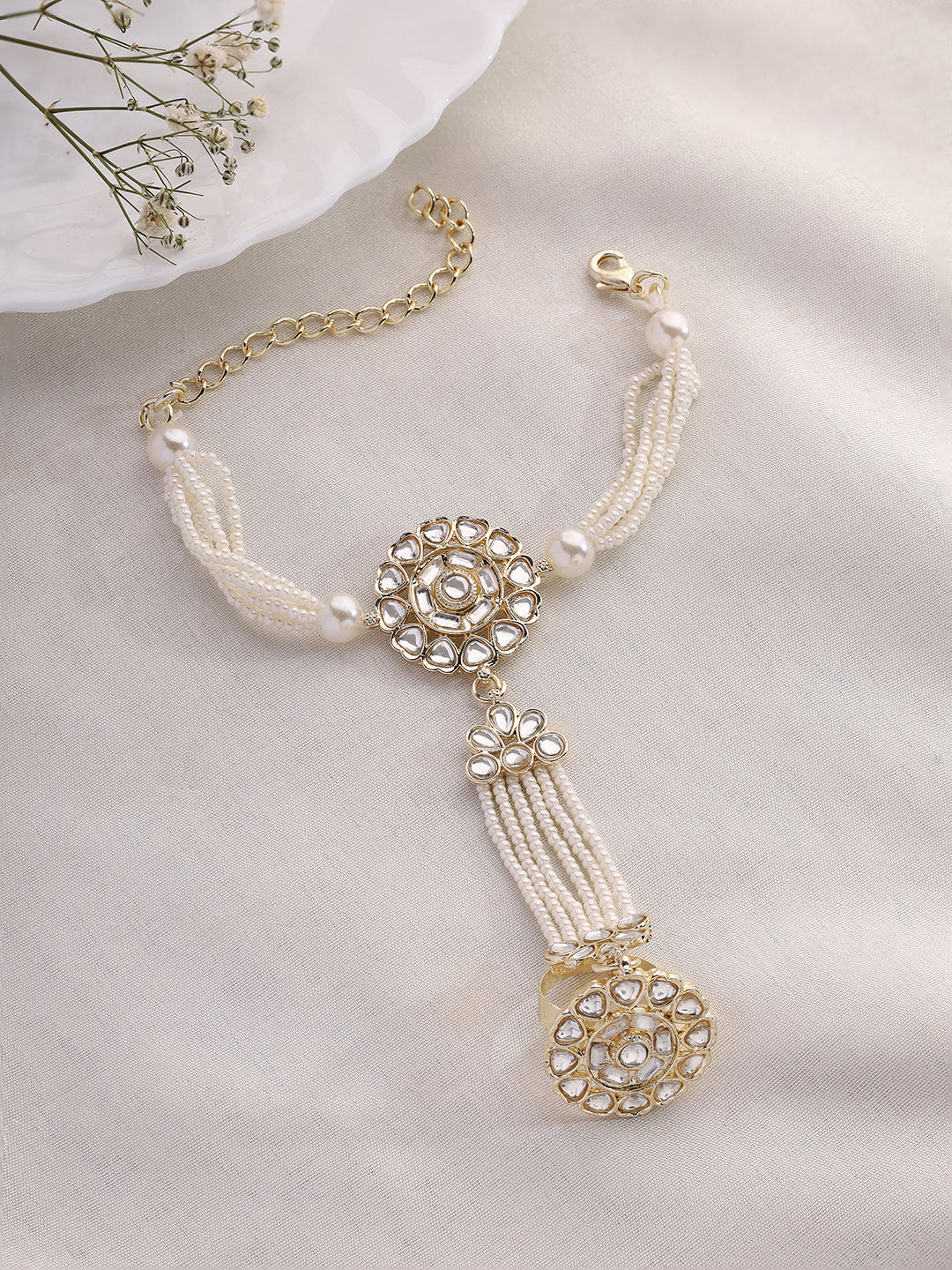 "Artificial Priyaasi Pearl and Kundan Combo Hathphool for Women | Traditional Ethnic Hand Jewelry"