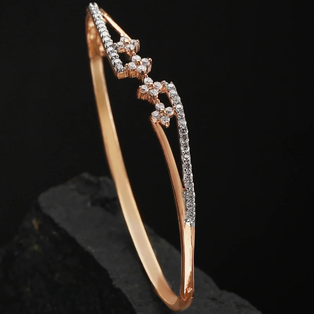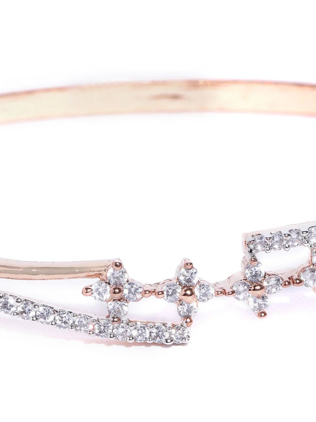 "Artificial Priyaasi Rose Gold-Plated American Diamond Studded Floral Bracelet for Women | Elegant Adjustable Jewelry"