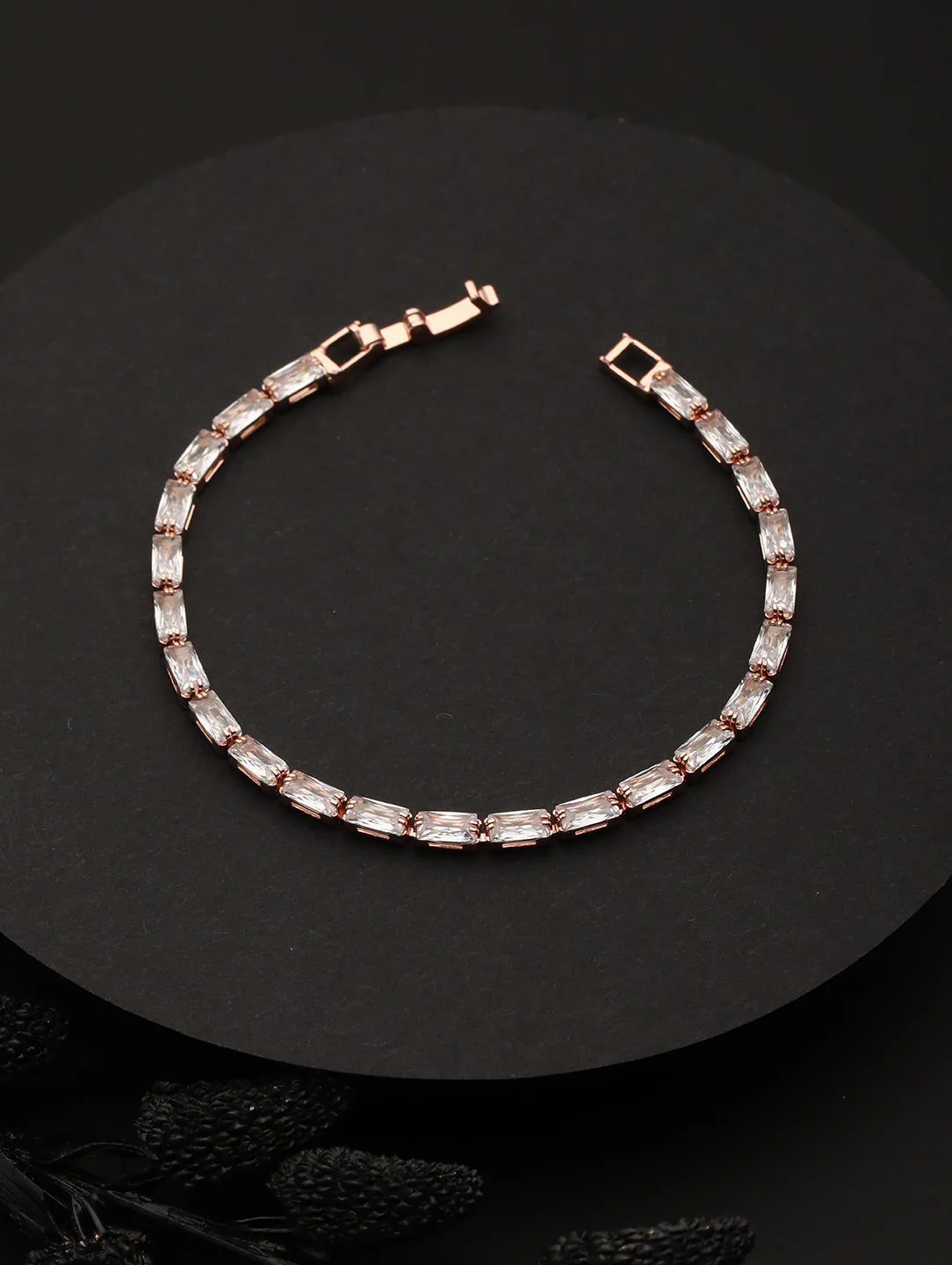 "Artificial Studded Brick American Diamond Rose Gold-Plated Bracelet for Women | Elegant Adjustable Jewelry"