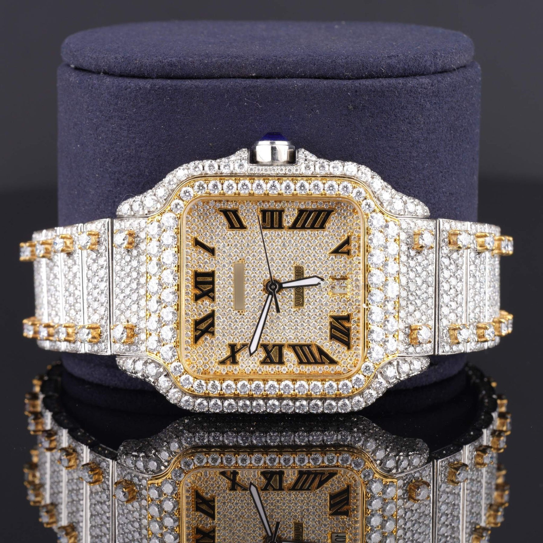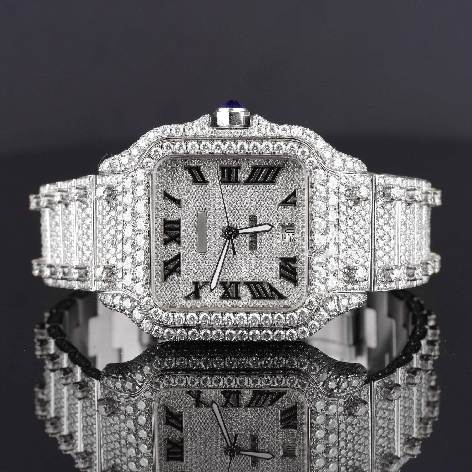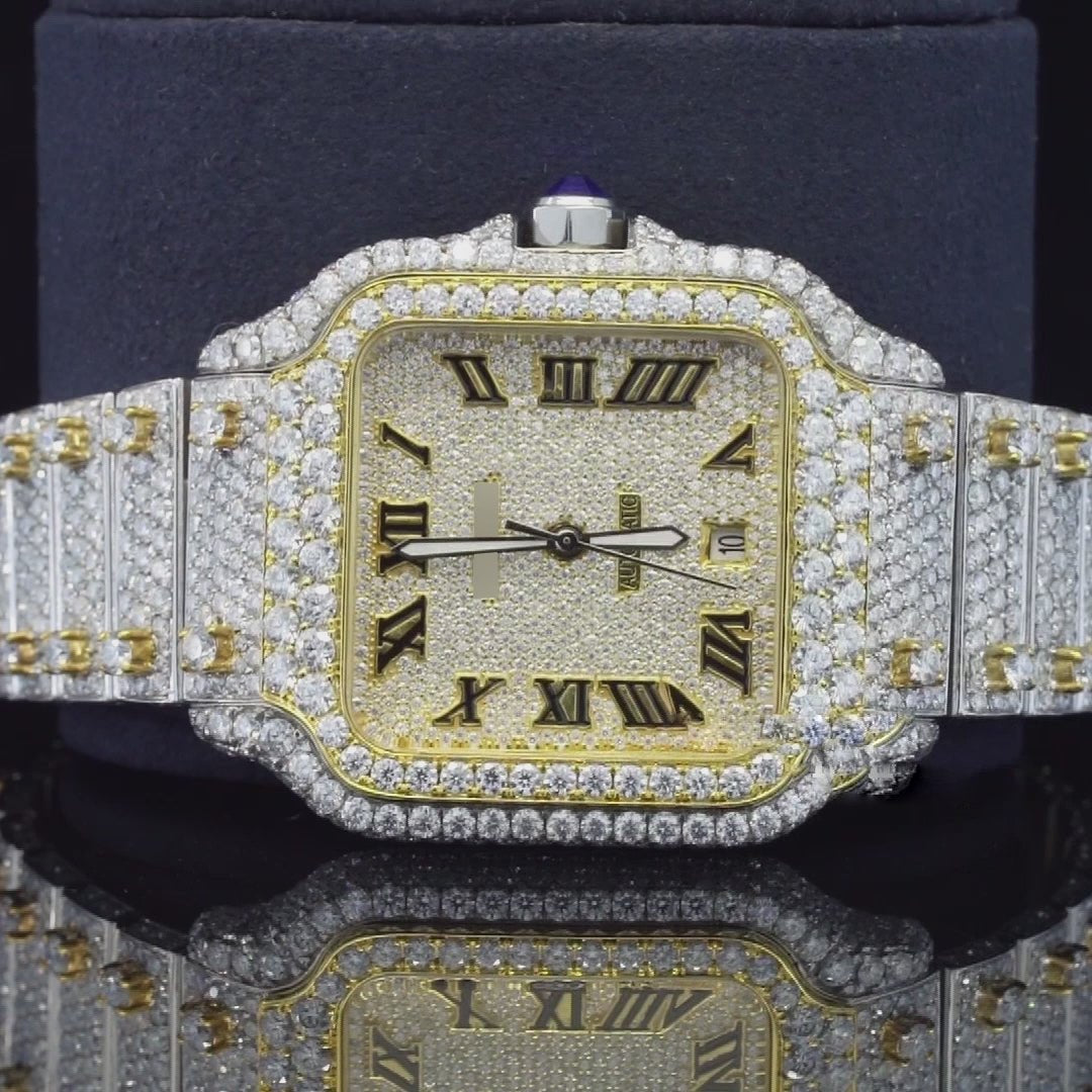 Automatic Roman Numeral Moissanite Watch – Luxury Iced Out VVS Bustdown Bling Watch with Automatic Movement for Men