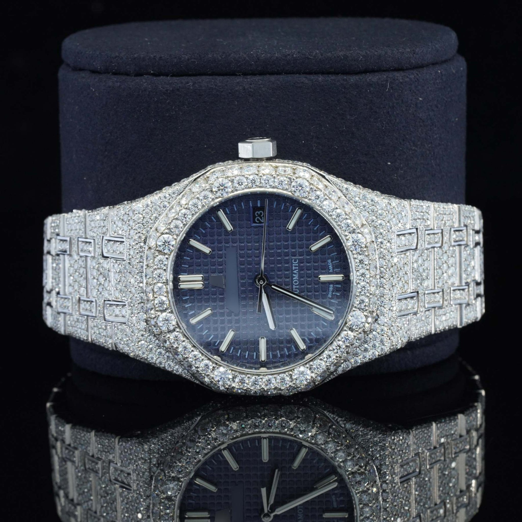 Blue Dial Iced Out Moissanite Watch for Men – Luxury VVS Bustdown Automatic Bling Watch with Stylish Hip Hop Design