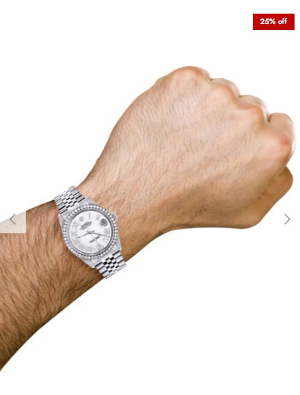 Diamond Mens Rolex Datejust Watch 16200 | 36Mm | White Roman Numeral Dial | Jubilee Band