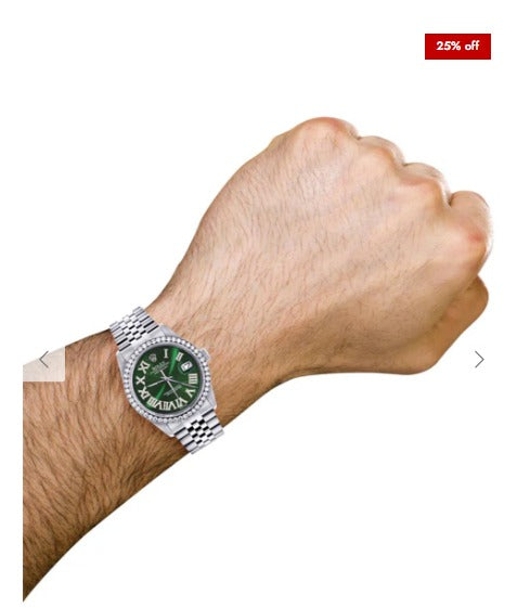 Diamond Mens Rolex Datejust Watch 16200 | 36Mm | Custom Green Roman Numeral Dial | Jubilee Band