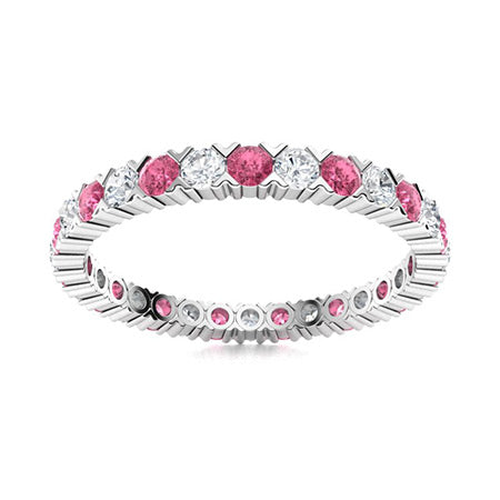 "Pink Tourmaline and Moissanite Wedding Ring for Women – Elegant Diamond-Look Band in 925 Sterling Silver, Yellow Gold, Rose Gold, or White Gold"